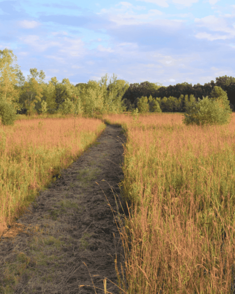 Quiet paths through restored prairie filled with wildflowers, birdsong, and soft golden light—perfect for morning walks and nature lovers.